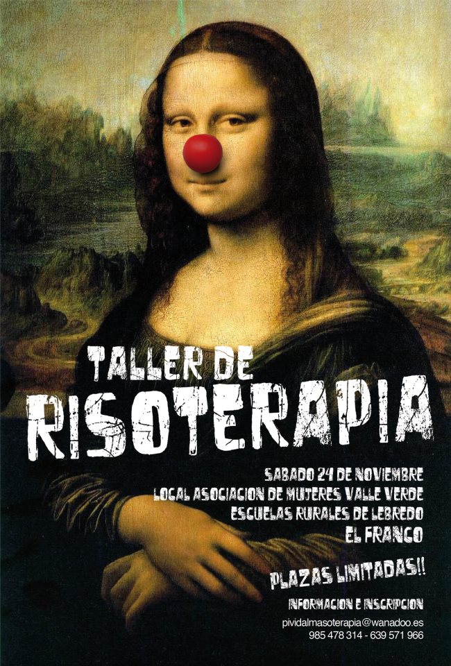 Taller de Risoterapia que tendrá lugar este Sábado 24 de Noviembre a partir de las 6 de la tarde en las Escuelas Rurales de Lebredo. Actividad gratuita.